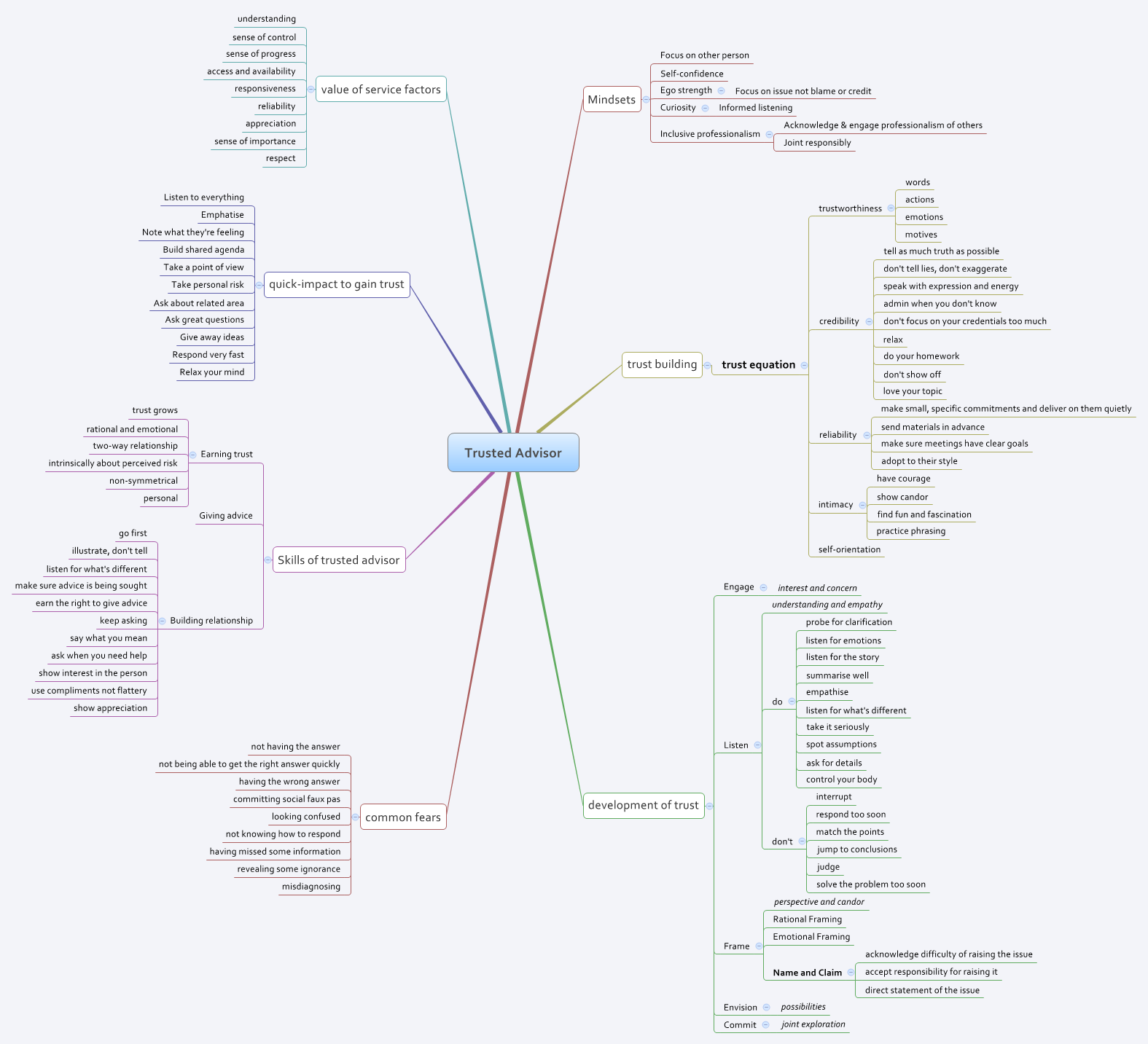 I like when that happens. I grabbed a “random” book in the office, flicked through and it turned out to be a real gem. “The Trusted Advisor” by Tom Peters, David Maister, Charles Green and Robert Galford is unsurprisingly all about trusts. It talks about the role and importance of creating and sustaining trust for professional consultancy services. You can use it as a guide for building and evolving trust. It describes what it looks like when you experience a trust relationship and gives good reasons why trust is more important that technical excellence.